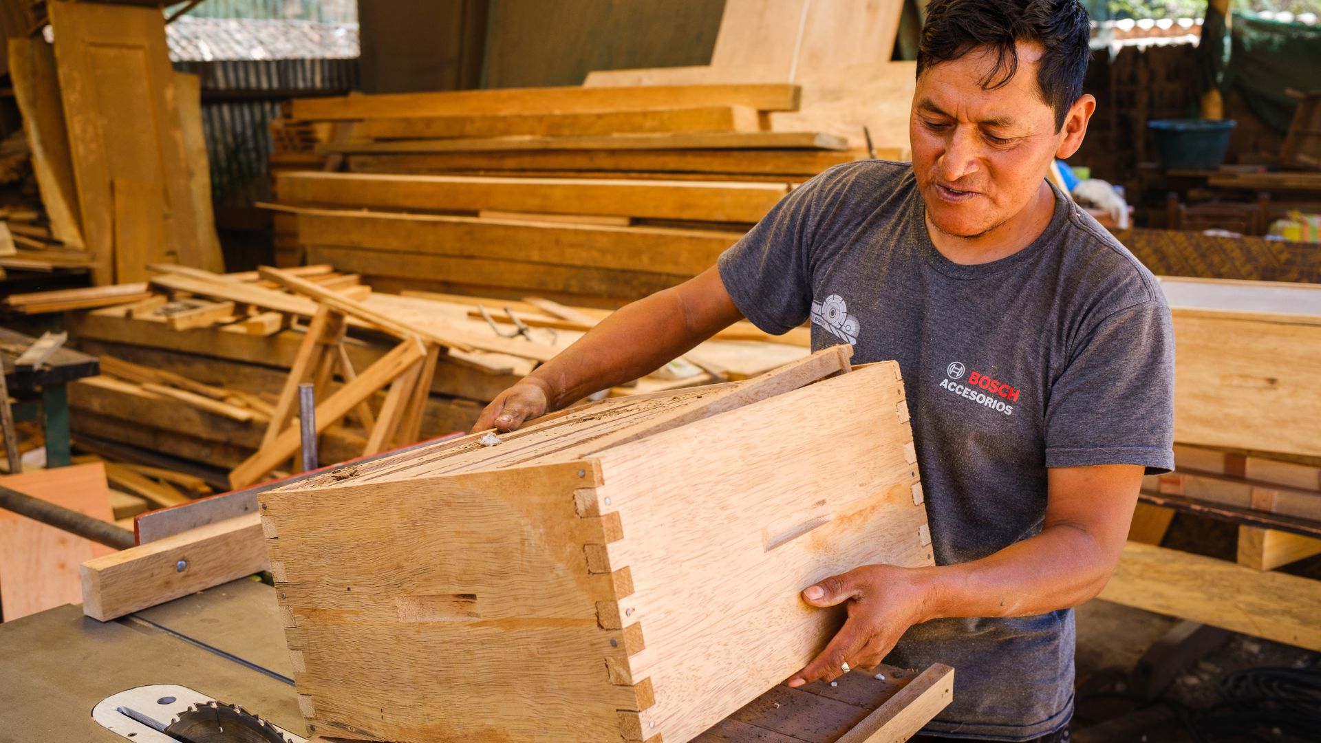 Por su parte, Yony Huamán Zúñiga, carpintero, ha fabricado hasta la fecha unas 80 colmenas para el proyecto y muchas más para apicultores locales.